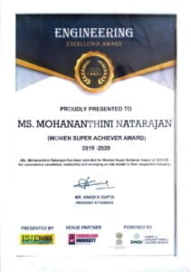 The Imperial society of Innovative Engineers as recognition of a significant contribution to institution building process as illustrious career .The Muthayammal Engineering College faculty, Dr. N. Mohananthini from EEE Department has received the Engineering Excellence award during the academic year 2019-2020.