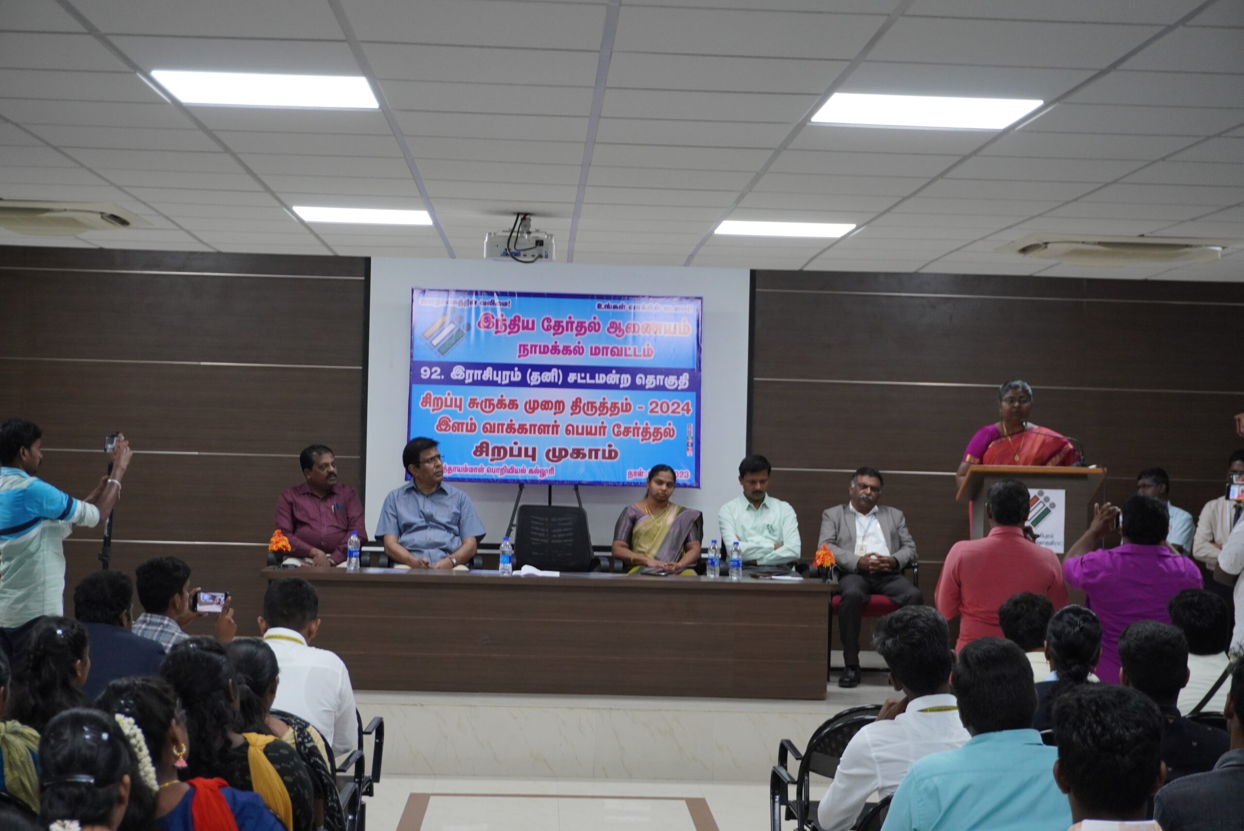 The Voter’s Enrolment Campaign for students took place at Muthayammal Engineering College campus on 03.11.2023. Dr. S. Uma, the District Collector, graced the event as the chief guest and delivered a compelling speech on the significance of new voter enrolment in shaping India as a democratic nation. The students have been adequately educated on their role and responsibilities as voters. Notably, 437 students hailing from Namakkal districts were successfully enrolled as voters during this momentous occasion.