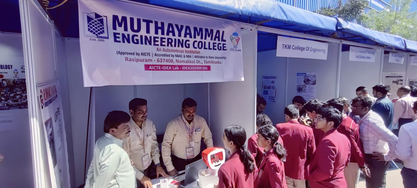 Faculty and students from Muthayammal Engineering College showcased innovative projects, including Industrial Robotic Arms, which enhance business competitiveness by automating key processes, improving worker safety, accelerating production and boosting overall productivity. Another notable project was the Human Interaction Robot, a rapidly evolving field of research with wide-ranging applications that address critical challenges and offer solutions with significant social and industrial impact.