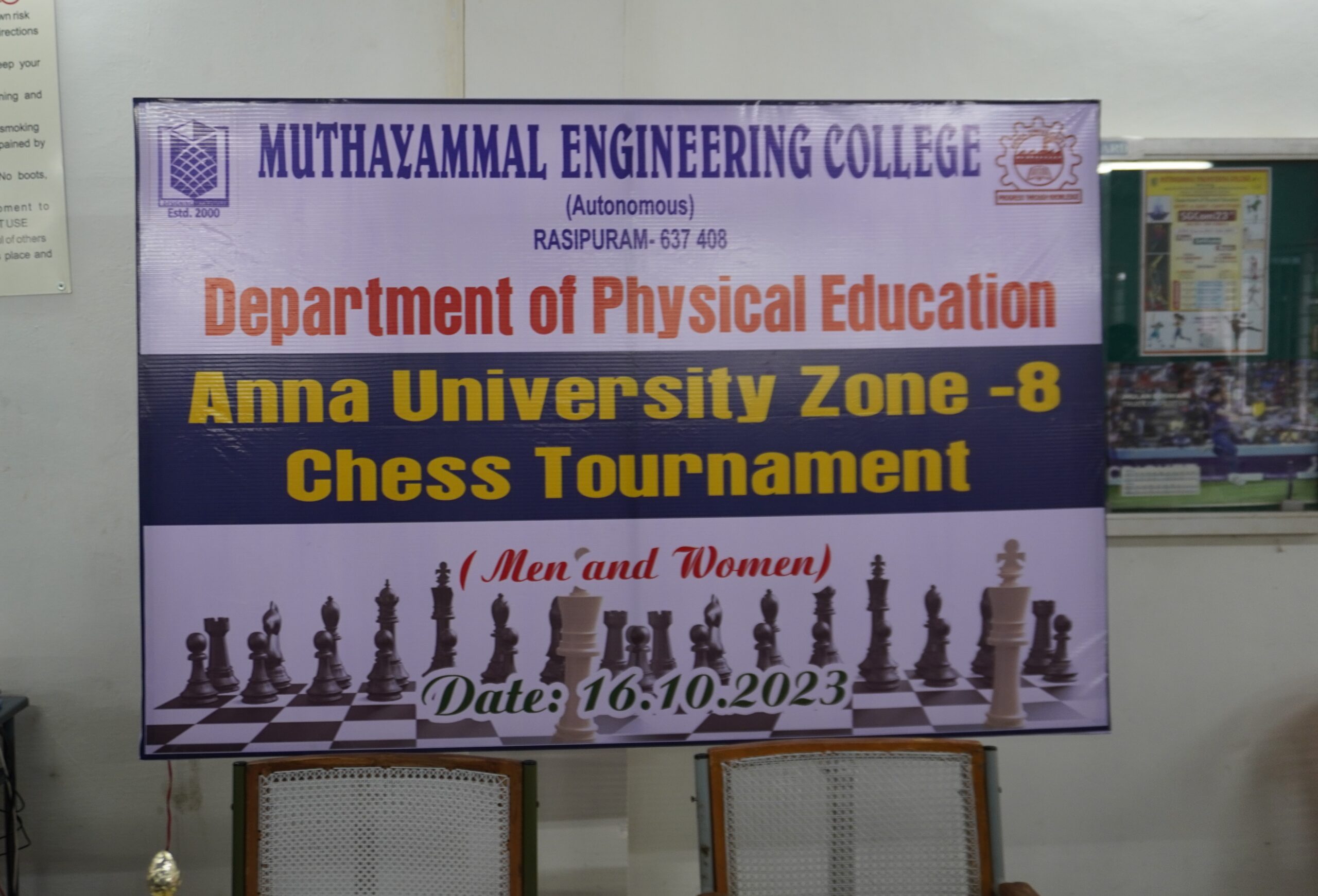 The Anna University Zone – 8 Men and Women Chess Tournament was conducted at Muthayammal Engineering College in Rasipuram. The chess tournament included 15 men’s team and a 10 women’s team from Colleges. Our college women’s team won First place.