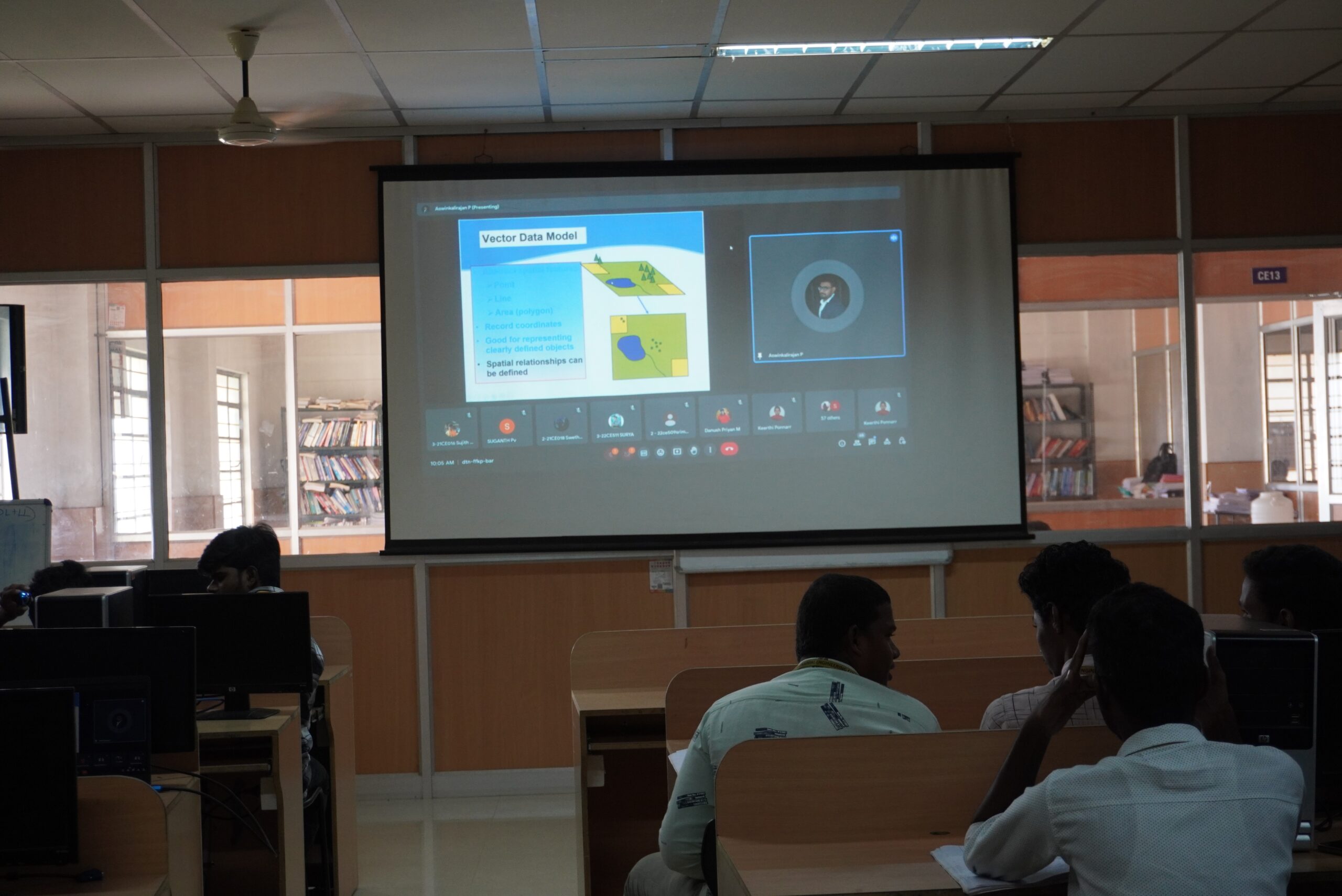 Guest Lecture on Introduction to GIS and its Importance was Organized by the Department of Civil Engineering on 17-11-2023. The Resource Person of the event was Mr.P.Aswin Kalirajan M.E, GIS and Remote Sensing Analyst, Datasee.AI Private Limited. He delivered about basics of GIS and its importance in different sectors. The students actively participated in the Guest Lecture, had a good query session with the Resource Person.