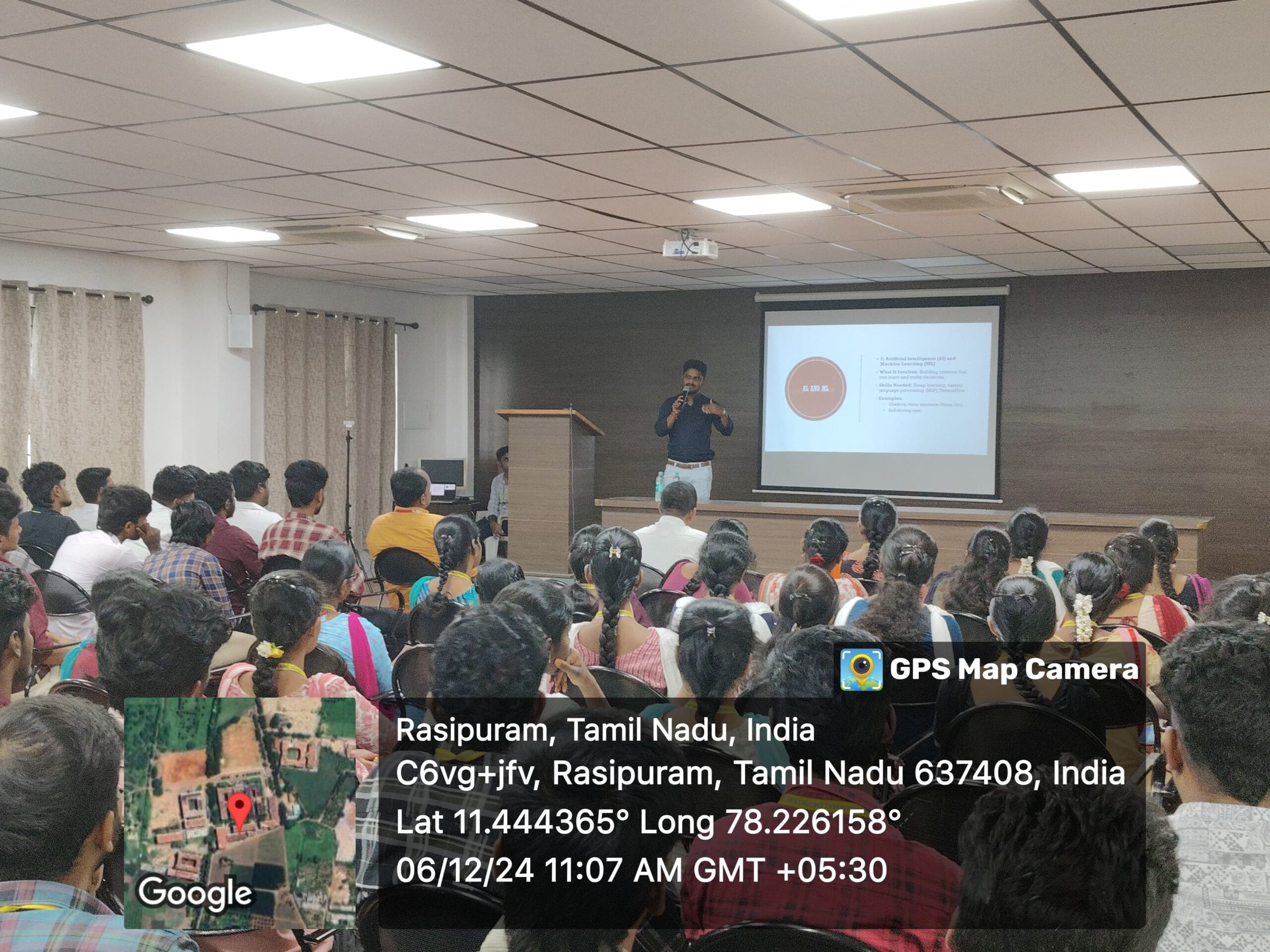 The Department of Master of Computer Applications conducted a seminar “Modern IT Stacks and its Applications”. Mr. Dineshkumar Thangavel, a Software Developer at EPam Systems Pvt. Ltd in Hyderabad, discussed the significance and potential of Data Science and analytics, AI & ML, Cloud Computing, Cyber Security, DevOps, Testing, Game Development, and industry workflows.