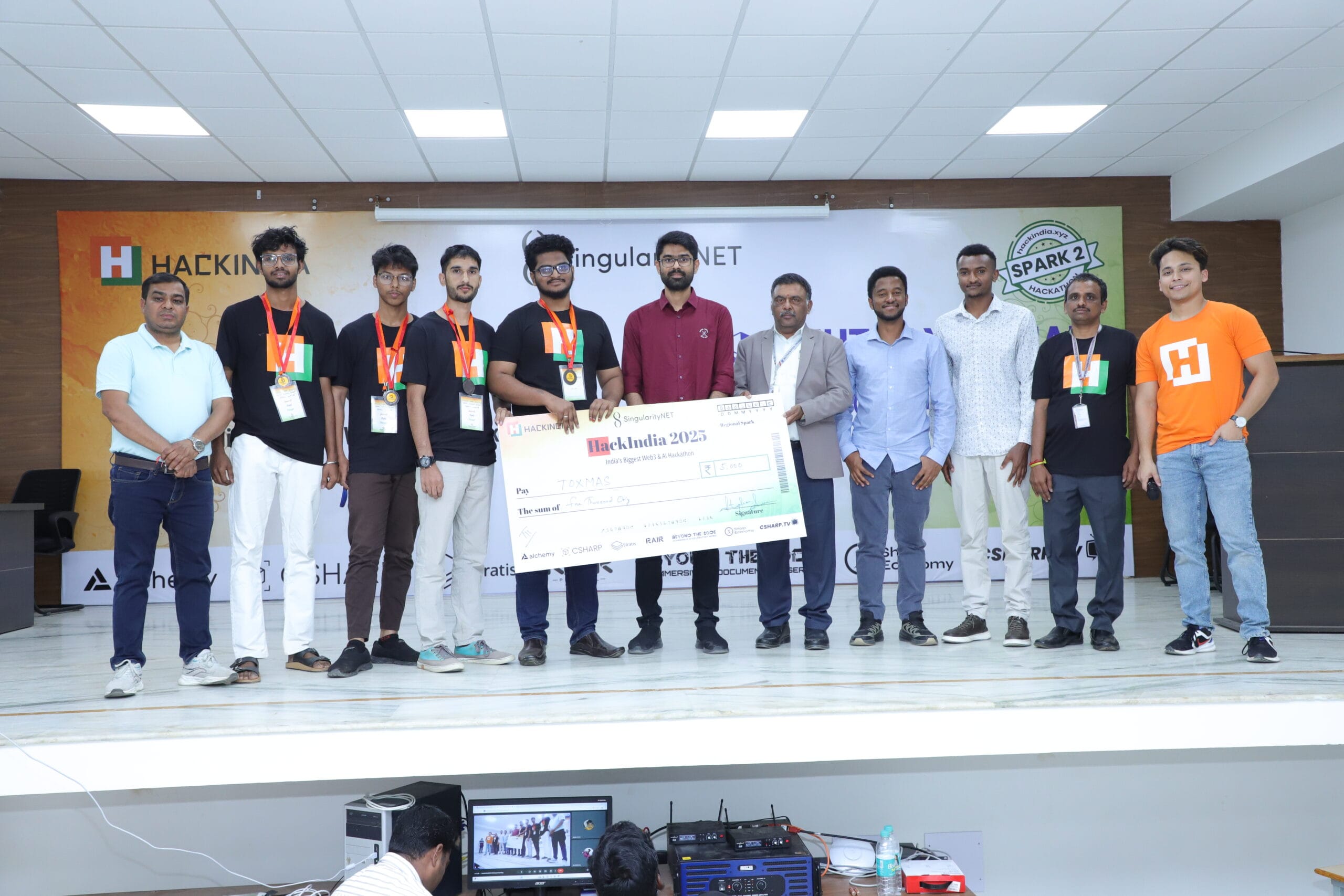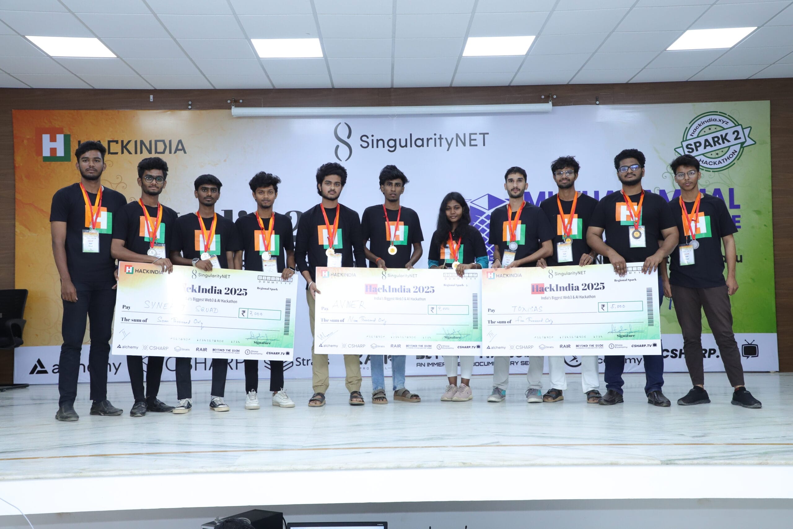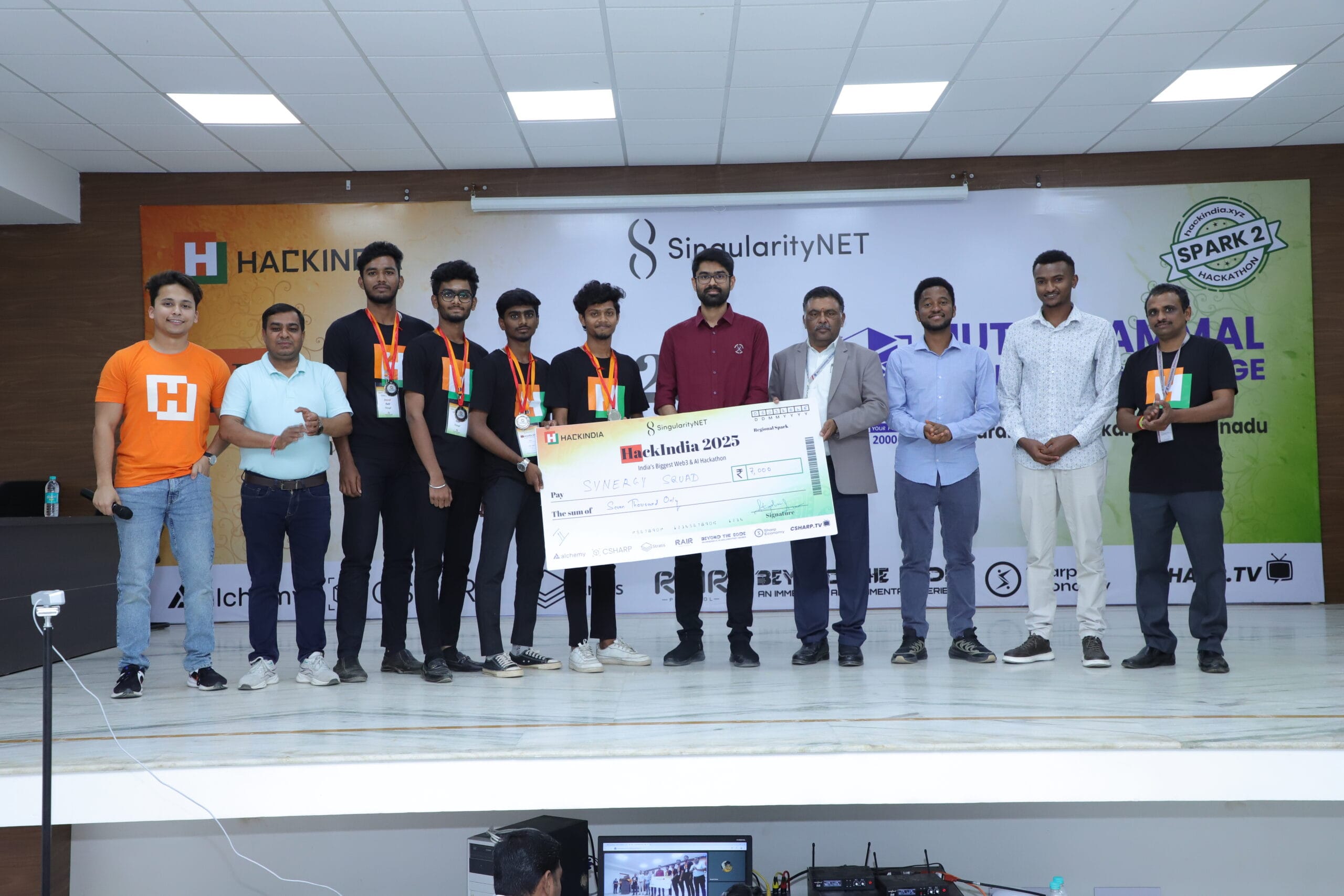Muthayammal Engineering College, Rasipuram and C Sharp Corner jointly organized a National Level Hackthon, HackIndia 2025 –Spark II (India’s Biggest Web3 & Al Hackathon) in college premises for college students to discover new technologies in the field of Web3 & AI. Over 500 students from different colleges, throughout Tamil Nadu, participated in the event and showcased their talents as part of this competition. The third -year students from the Department of Artificial Intelligence and Data Science of Muthayammal Engineering College J. A. Dharunprakash, G. Vetrikanth, D.VisvakSena and S.V.Moulieeswar, secured the second Prize. The first prize was awarded to the students of Rajalakshmi Engineering College and the third prize to the students of Kalasalingam University. Er.Mr.G. Raghul, Joint Secretary of Muthayammal Educational Trust and Research Foundation congratulated and distributed the prizes to the winners.