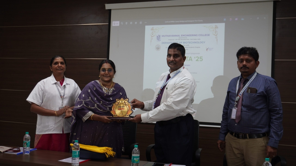 The Department of Biotechnology hosted the 7th National Level Technical Symposium, BIOVISTA – 2K25, on 12-08-25. The keynote speaker was Dr.K.Manjula, Chief Executive Officer of BioTechno Solutions Training and Research Institute in Trichy.