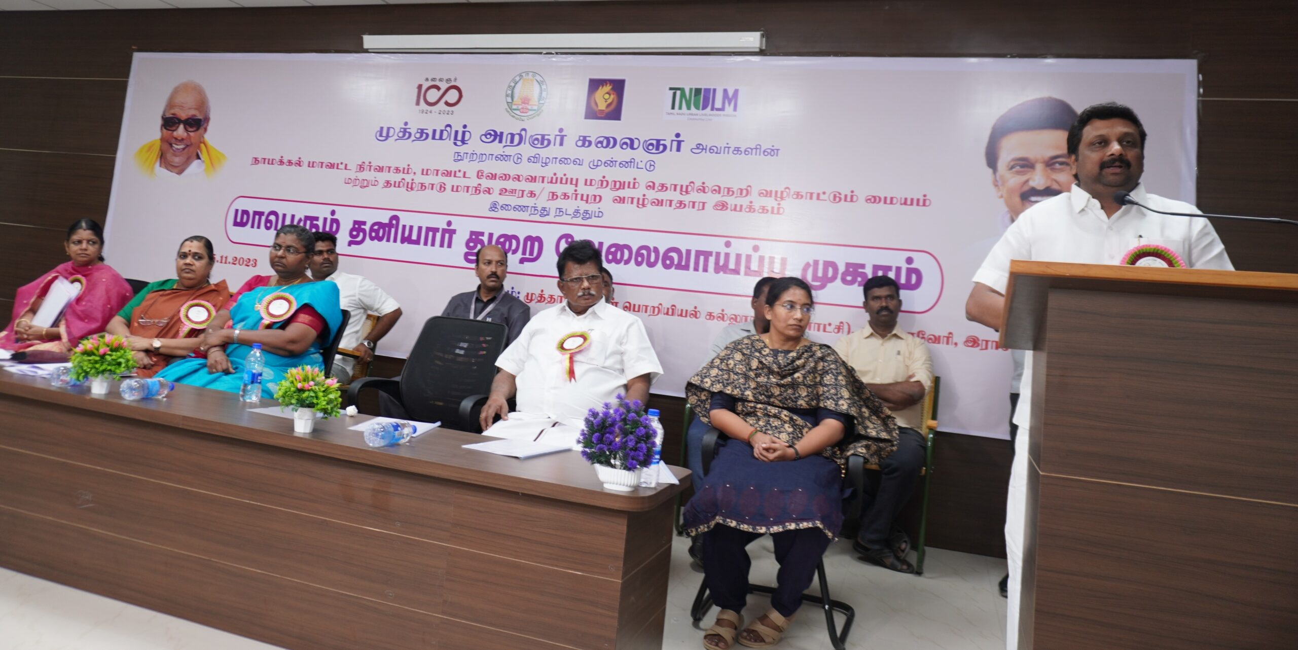 Muthayammal Engineering College collaborated with the Namakkal District Employment office to host a remarkable Private Job Fair on 25.11.2023. Over 150 companies actively participated in this event, extending employment opportunities to numerous individuals. The presence of esteemed guests, including the Member of Parliament, District Collector, Secretary & Managing Trustee-Dr.K.Gunasekaran and Principal-Muthayammal Engineering College added grandeur to the occasion.