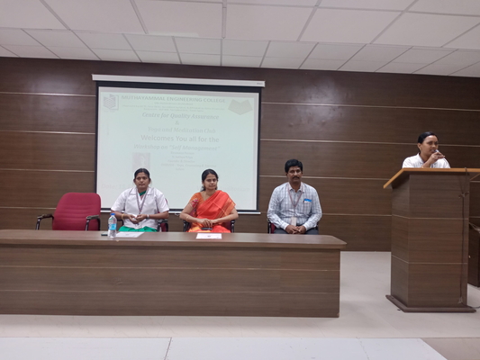 Internal Quality Assurance Cell – Centre for Quality Assurance & Yoga and Meditation Club of Muthayammal Engineering College organized a Workshop on “Self Management”.