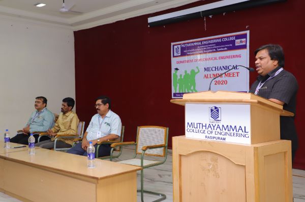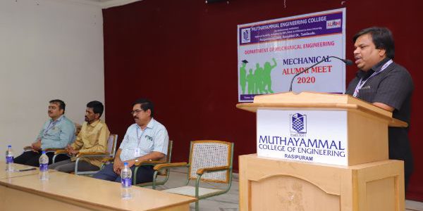 Department of Mechanical Engineering in association with alumni association organized meet for Mechanical Engineering passed out students on 1.03.2020 at 10.00am in MCE auditorium. Mr.Ajay Viswanathan, Vice President, VITAA –Salem Chapter, Ambassador – VIT Alumni Association, Salem was the Chief Guest. He shared his thoughts of getting benefits through alumni chapters during his speech. More than 150 alumni participated and gave their suggestions for the growth of Institution. The alumnus appreciated the Institution for taking new initiatives like TASTE, MKC, MuDiL, 50G and Student Tech Talks. During the meet the alumnus interacted effectively and recollects their sweet memories. Also alumni are honoured with memento and delicious lunch.