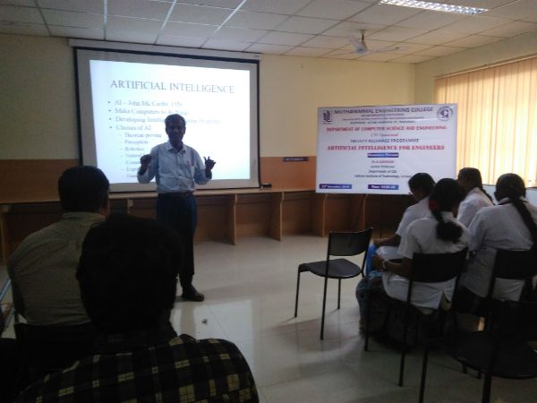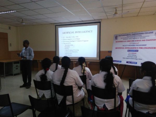 Faculty Recharge Programme “Artificial Intelligence for Engineers” organized by Department of Computer Science and Engineering held on 23-11-2019. The Recourse Person Dr.A.Kannan, Rtd. Professor, Department of Information Science and Technology, CEG campus, Anna University, Chennai, has motivated the Faculty toward Recent trends like Machine Learning and Artificial Intelligence for Engineers for encouraged the minds of Faculty towards the recent applications and Develop High Quality ML Models Faster With Less Effort And Lower Cost. Build, Train, And Deploy Machine Learning Models Quickly.