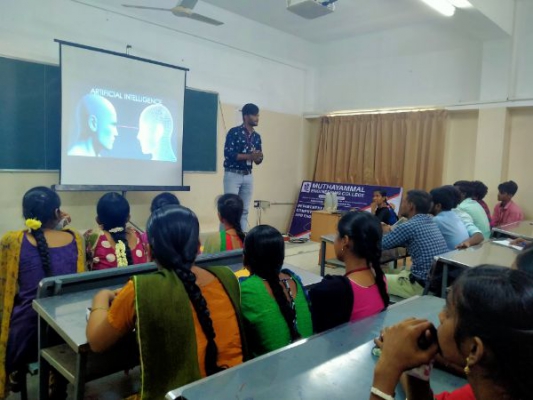 Student Tech Talk on Artificial Intelligence organized by the Department of Computer Science and Engineering on 20/02/2020 in Smart Class Room CSE. Mr. Gajula Prem Saidhar, II-Year–CSE–‘A’ Section. He delivered about the basic Knowledge in Artificial Intelligence and SIRI to self-driving cars, artificial intelligence (AI) is progressing rapidly. The students are actively participated in the Session.