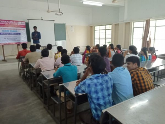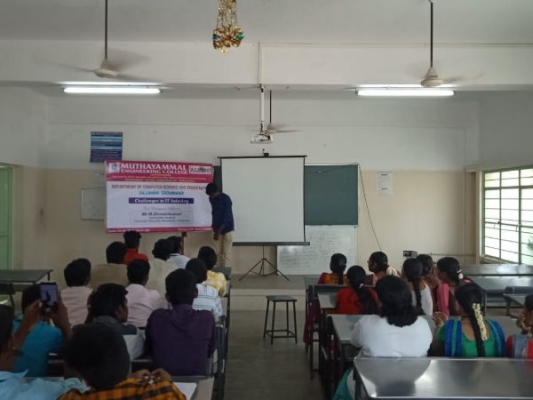 Alumni Interaction on “Challenges in IT Industry” organized by department of Computer Science and Engineering for the benefit of Second Year students of on 12.10.2018, Mr. M. Dinesh Kumar, Associate Analyst, Comodo Security Solutions, Chennai, is the resource person. Share his working experience and advised the students to go for inplant training.