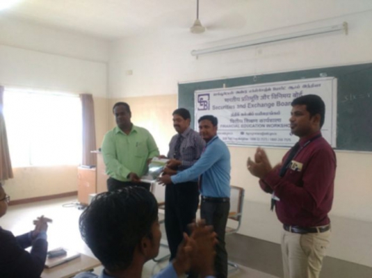 The Chief Guest of the function Shri. D.Krishnakumar Financial Education Trainer, SEBI.Shri.D.Krishnakumar, Financial Education Trainer, SEBI, He has taken the full session about Mutual funds and smart goal setting. In this session he explained about how to achieve your goal, risk vs return. He elaborately explained inflation effects on investment, saving & investment related product, advantages of financial education, risk taking, return on investment, investor protection and grievances redressal mechanism and various rules of SEBI.