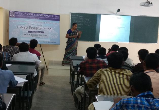 Guest Lecture on Web Programming and Its Applications organized by the Department of Computer Science and Engineering on 30.06.2016 in CSE Smart Class Room. The Chief Guest of this Event is Dr.S.Kalaivani, Professor/CSE, IRTT Erode. Section delivers the basic information about Web Programming and the Students are actively participated in the Session.