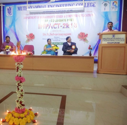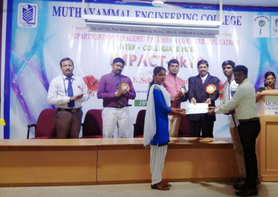Our Guest of honor, Dr.K.Selvavinayagam, Principal, Periyar University college of Arts and Science, Pennagaram gave the informative speech. In his speech, he stressed the importance of communication development, qualities of a successful entrepreneur and focused towards goal in their career. Various events were conducted by the department to bring out the hidden talents of arts and science students from different institutions and prizes were distributed to the winners of various events. Dr. M. Moorthy, Professor and Head, Department of Computer Applications gave the vote of thanks and the program ended with a great success.