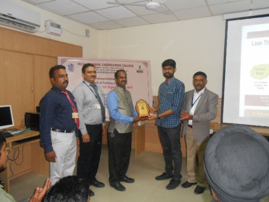 Muthayammal Engineering College (Autonomous), Rasipuram in association with MSME-TDC (Chennai), Govt. of India announces “Certified Lean Six Sigma Green Belt” Training Program for industrial personals. The training was an eye-opener to the corporate peoples by Dr. Gopal Sivakumar, CEO & Principal Consultant, ISS Intelligent Quality Control, Chennai, whose thoughts on “quality“was redefined. Various methodologies to obtain zero defects were trained.