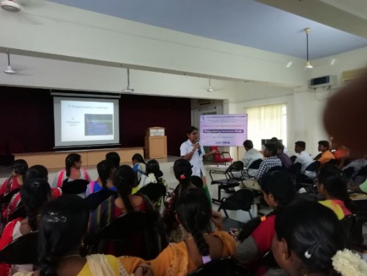 Department of Computer Science and Engineering Introduced the Programme Awareness Week for the benefits of First year Student held on 11-11-2019 to 15-11-2019. Dr.G.Kavitha, Professor, HoD/CSE, Dr.S.Vijayaraghavan, Dr.P.Srinivasan, Dr.J.Preetha, and Prof.P.Rupa Ezhil Arasi are discussed about C language, OOPS & Java, Go Language, R Language, V Language. Mrs.G.Sumathi, AP/CSE Organised the Programme.