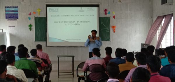 Department of Mechanical Engineering organized the workshop on Recent Trends In Industrial Automation. Mr. K.ELANCHEZHIAN, Assistant Manager – Technical, Prolific Systems & Technologies Pvt. Ltd, Coimbatore presented a guest lecture top the third year mechanical engineering students. He explained the significance of automation in industries, the current trends prevailing in industrial automation, the skills required for the engineers to get involved in industrial automation, the hardware and software required for automation and the language skills required for automation. He also elaborated on the job opportunities for the students in this field. More than 120 students participate and benefitted through this event.