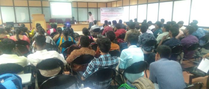 The Department of Information Technology organized a seminar entitled Blockchain Technology on 28.09.2019. Dr.Kunwar Singh, National Institute of Technology, Trichy, addressed teaching fraternity and the student community. The purpose of this seminar is to educate the students about Cryptography and Blockchain technology.