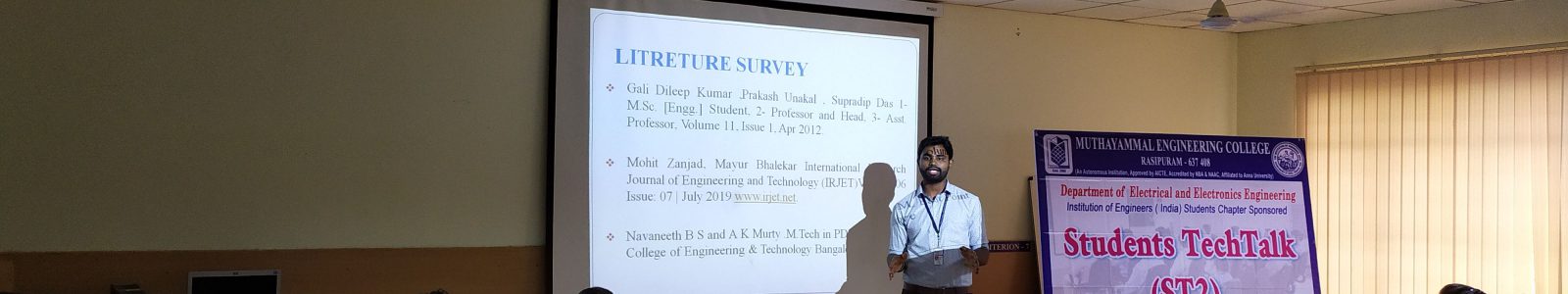 The Department of Electrical and Electronics Engineering Organized Student’s TechTalk on Application of Embedded System in Poultry Form, 26.09.2019. G.Poovarasan, Roll Number: 17EE518, Department of EEE provided an interactive talk about Embedded System.